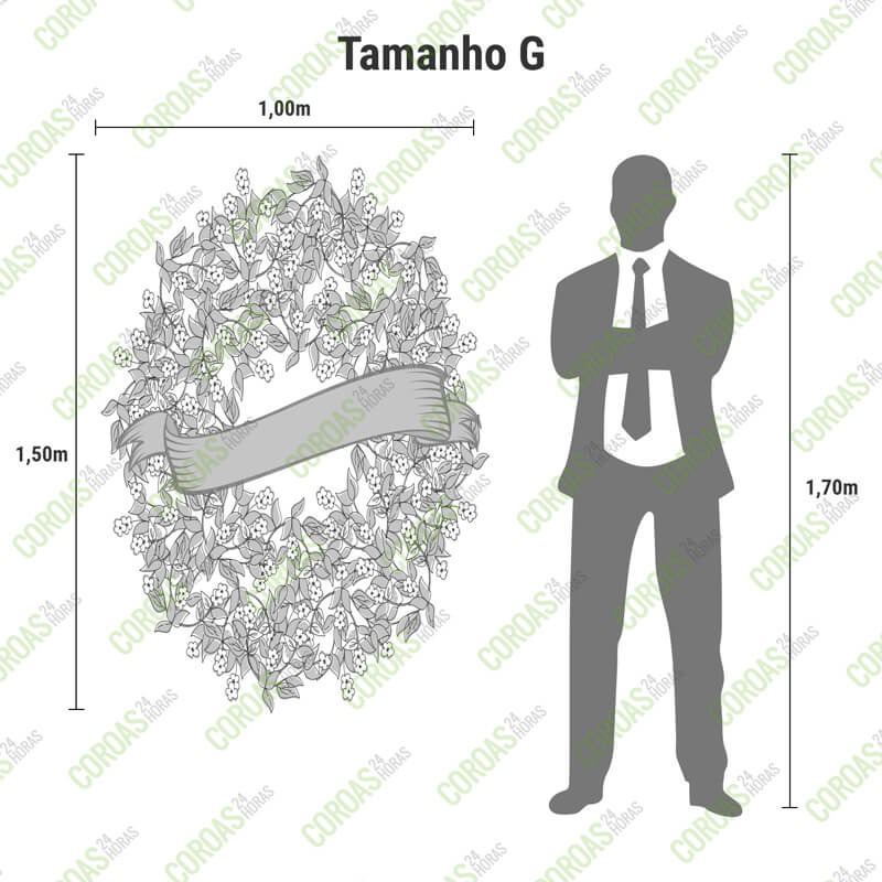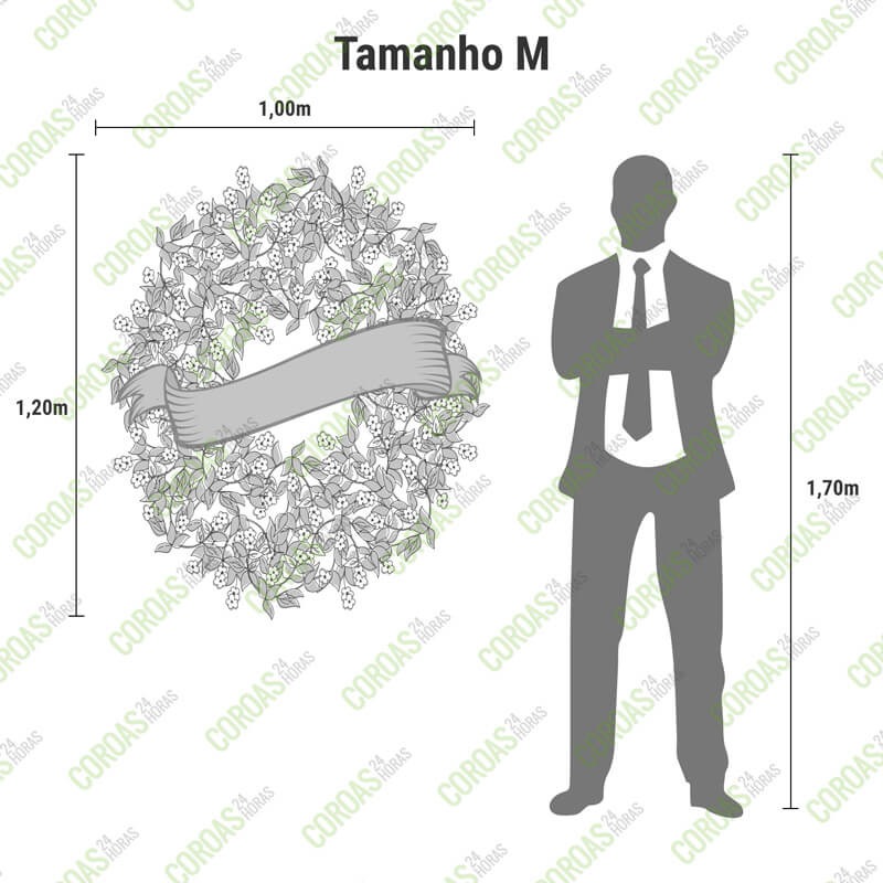 Tamanho M: 1.00x 1.50 Tamanho G: 1.20x 1.70. Para conclusão do pedido, informe local da entrega, nome do falecido e horário. As flores podem mudar de acordo com a época do ano e disponibilidade do estoque, sempre respeitando as cores e qualidade escolhida.